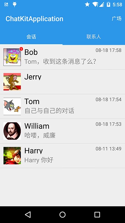 使用这些默认的属性基本可以满足一个聊天应用的需求,同时开发者可以通过继承 LCChatKitUser 类实现更多属性。具体用法请参考 Demo 中的 MembersAdapter.java。